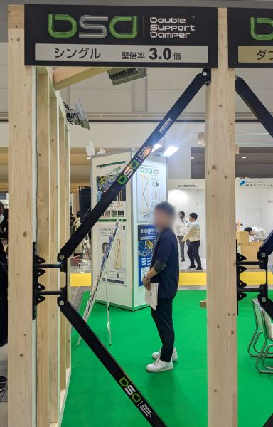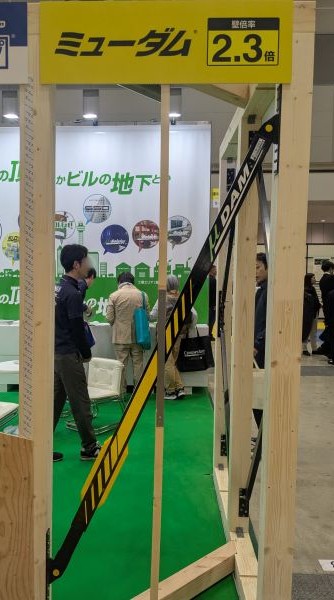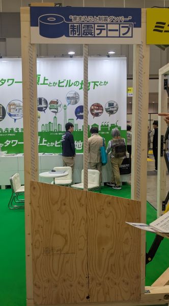 今回は、気になっていた建材メーカー「アイディブレーン」のブースを訪問し、木造住宅向けの「制震テープ」、制震装置「ミューダム」、そして「ディーエスダンパー」を中心に見てきました。ここでは、それぞれの特徴を簡単にご紹介します。