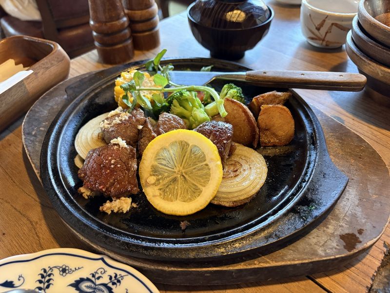 下山後は、近くのお店で常陸牛をいただきました。